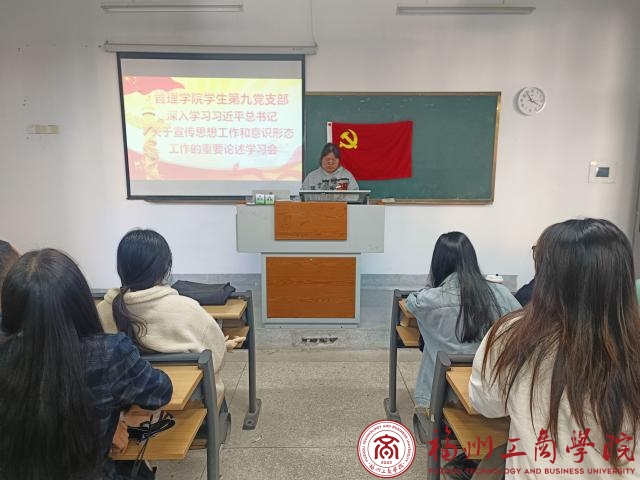 为深入学习贯彻习近平文化思想,全面贯彻落实党的二十大关于文化建设的战略部署,推动宣传思想文化工作适应新形势新任务,展现新气象新作为。11月22日下午,betway88西汉姆联员工第九党支部在C105召开深入学习习近平总书记关于宣传思想工作的重要论述专题会议。此次会议由支部组织委员吴俊婷主持,全体党员参会。