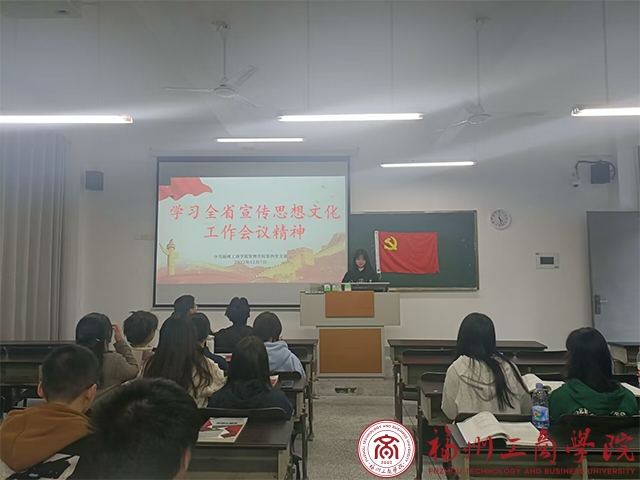 为深入学习贯彻习近平文化思想,落实全国宣传思想文化工作会议要求。11月21日下午,betway88西汉姆联员工第四党支部在教学楼E305组织召开关于深入学习全省宣传思想文化工作会议精神专题学习会。