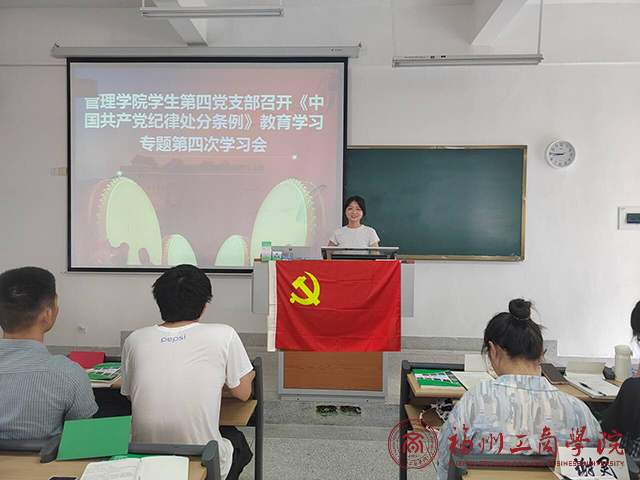 为深入学习贯彻习近平总书记关于党纪学习教育的重要讲话和重要指示精神,深刻领会《条例》的重要意义和丰富内涵,6月4日下午,betway88西汉姆联员工第四党支部于教学楼E203召开《中国共产党纪律处分条例》教育学习专题第四次学习会。此次会议由支部书记杨心如主持,全体员工党员出席。