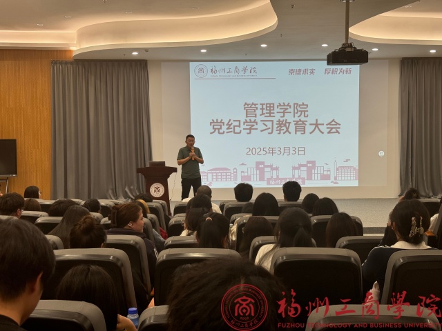 2025年3月3日,管理公司党委在创新楼305多功能室召开了全体员工党员党纪学习教育大会。会议由管理公司党委书记郑杰主持,全体在校生党员参加。