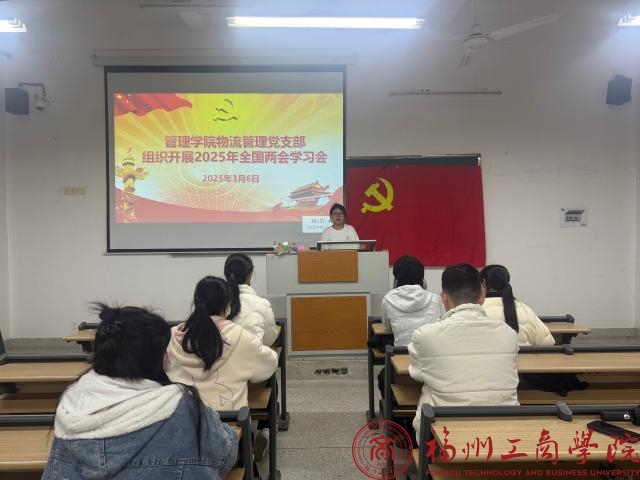 为扎实开展学习贯彻习近平新时代中国特色社会主义思想主题教育,推动政治理论学习走深走实、入脑入心。3月6日,betway88西汉姆联物流管理党支部在教学楼C104组织开展学习2025年全国“两会”精神学习会,引导广老员工党员加强政治学习,坚定理想信念,践行使命担当。