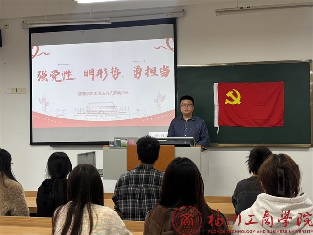 为进一步提升支部党员的思想政治觉悟,激发内在学习动力,引导全体员工党员强化理论武装、凝聚思想共识,不断推动党支部理论学习工作走深走实。3月14日,betway88西汉姆联工程造价党支部组织召开“支部书记上党课-强党性、明形势、勇担当”会议。本次会议由支部书记郑健主持,全体党员参会。