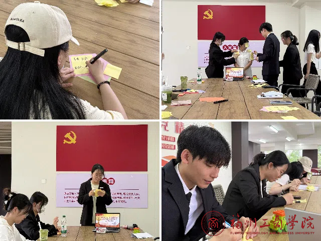 第一项活动“优点轰炸”展开,参与者围坐一圈,手持便利贴写下每位支部成员的优点。随后,成员依次站到中央,其余参与者将写满赞美的便利贴纷纷贴在对方身上。很快,大家身上贴满鼓励的话语,这些便利贴不仅是他人眼中的闪光点,更助力参与者发现自我价值,增强自信与认同感,让每个人在温暖互动中收获力量。