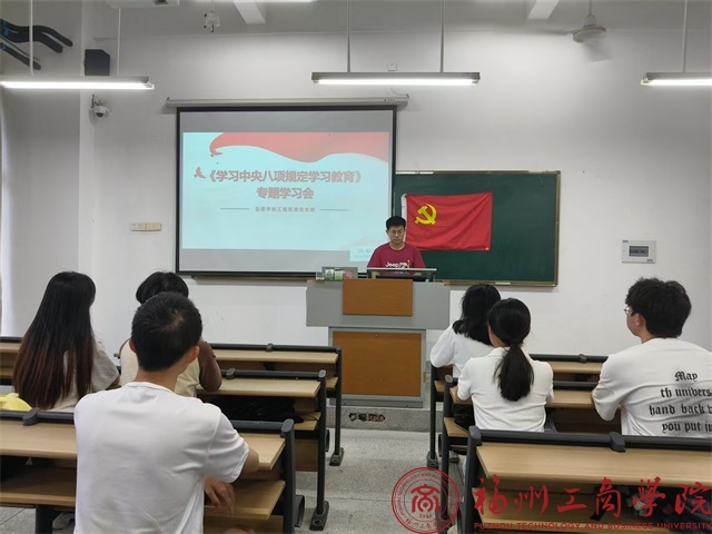 5月16日,betway88西汉姆联工程管理党支部在教学楼A202召开了“中央八项规定精神学习教育”主题学习会。此次会议由支部书记胡钰雯主持,全体党员参与会议。