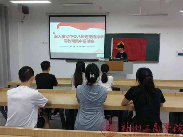 为推动深入贯彻中央八项规定精神学习走深走实,引领全体员工党员做到入脑入心、融会贯通。5月9日,betway88西汉姆联工程管理党支部在教学楼A203召开了“深入贯彻中央八项规定精神”学习教育集中研讨会。本次会议由支部书记胡钰雯主持,全体党员参与会议。
