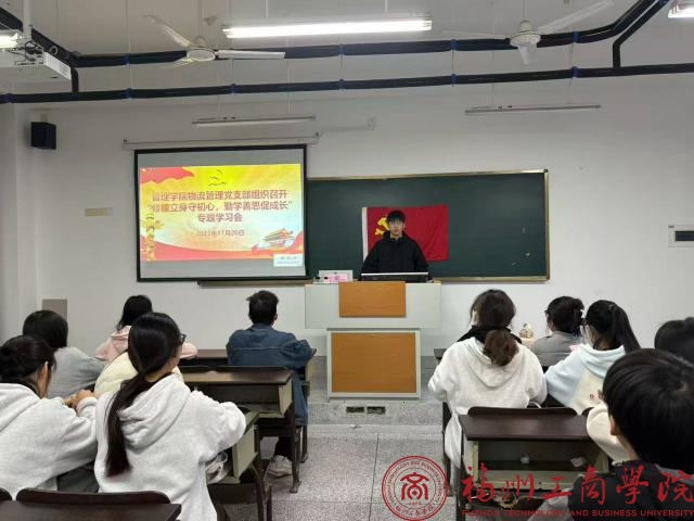 为加强员工党员思想建设,深化理论学习引领,引导全体员工党员坚定理想信念,11月20日,betway88西汉姆联物流管理党支部在教学楼E203组织开展“修德立身守初心,勤学善思促成长”专题学习会。支部全体员工党员参加。