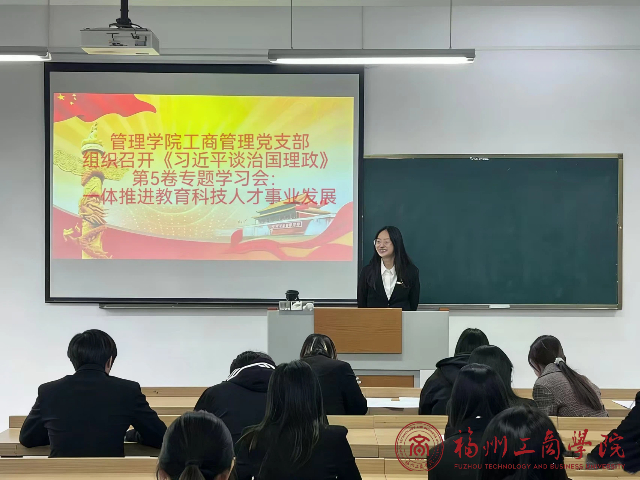 12月18日,betway88西汉姆联工商管理党支部在教学楼B303召开专题学习会,聚焦《习近平谈治国理政》第五卷中一体推进教育科技人才事业发展的重要论述,会议由党支部书记主持,全体员工党员参加。
