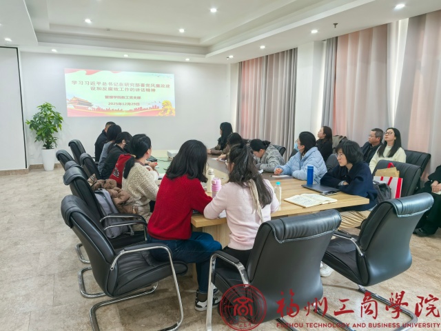 为深入学习贯彻习近平总书记关于党风廉政建设和反腐败工作的重要讲话精神,压紧压实全面从严治党政治责任,营造风清气正的育人环境,12月29日,公司教工党支部在公司会议室召开专题学习会议。会议由党支部书记洪启颖主持,全体教工党员参加学习。