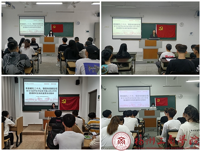 活动中,各班员工党员起先锋模范作用带动班级同学学习习近平新时代中国特色社会主义思想,深刻体会习近平总书记在中国人民大学考察调研时发表的重要讲话精神,呼吁同学们要坚持学深悟透,迅速掀起学习总书记重要讲话的高潮;坚持融会贯通,准确把握总书记重要讲话的精神实质和深刻内涵;坚持知行合一,以总书记重要讲话为指引形成生动实践。
