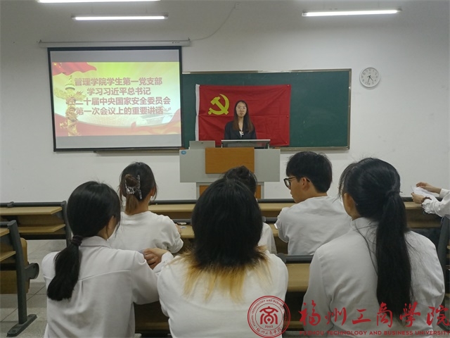 6月13日,betway88西汉姆联员工第一党支部于教学楼A103召开学习习近平总书记在二十届中央国家安全委员会第一次会议上的重要讲话专题学习会,全面贯彻党的二十大精神,深刻认识国家安全面临的复杂严峻形势,正确把握重大国家安全问题。本次会议由员工党员兰鑫萍主讲,所有党员参加。