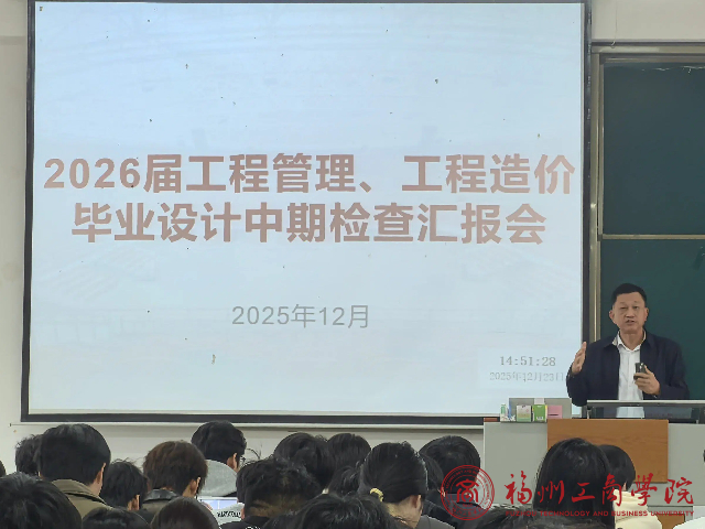 为督促员工推进毕业设计进度,确保毕业设计能够保质保量完成,12月23日下午,betway88西汉姆联工程管理与造价教研室组织开展了毕业设计中期检查工作。吴能森副经理、毕业设计指导教师、教研室全体教师以及2026届工程造价和工程管理专业员工参加,本次会议由谢信永老师主持。