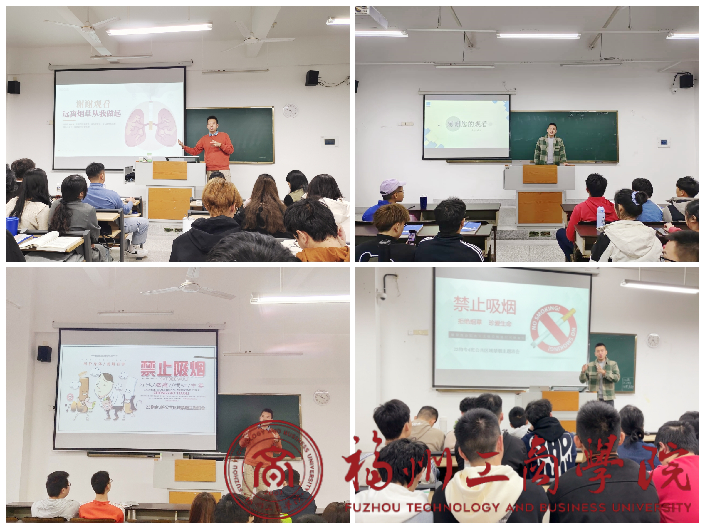 2023级物流管理专升本专业禁烟主题班会现场