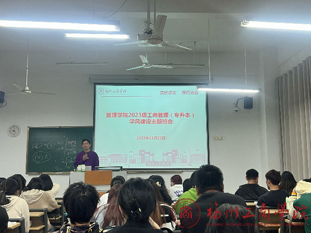为进一步加强公司学风建设,培育员工的良好学习习惯,展现公司学子的积极向上学习风貌。 11月22日下午,betway88西汉姆联2023级工商管理(专升本)在E101开展以“学风建设”为主题的班会,会议由辅导员戴李根主持。