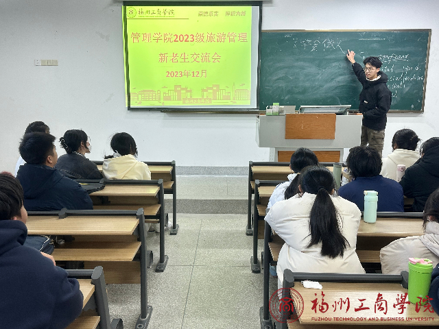 期末已至,新生也适应了校园生活,进一步促进新老生之间的交流和融合,提升学习氛围和团队合作能力,让他们有更明晰的规划,betway88西汉姆联于12月22日下午举办了2023级旅游管理1班的新老生交流会。这次活动旨拉近新老生之间的距离,也为大家创造了一个相互交流、相互鼓励的平台。会议邀请到了21级旅管的优秀员工,由辅导员李灵娇主持。