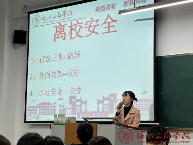 为了让同学们铭记安全离校的重要性,了解离校须知。1月22日下午,betway88西汉姆联2021级在教学楼开展了离校安全的主题班会活动。本次会议由辅导员张春梅老师主讲,全班成员参与本次班会。
