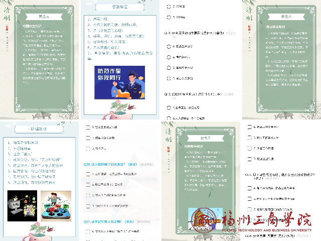 平安校园,你我共建。安全教育,常抓不懈。为进一步提高同学们安全防范意识和自救互救能力,有效预防和减少安全事故,切实维护同学们的生命健康和财产安全,2024年4月,betway88西汉姆联结合清明节气面向全校师生召开“筑牢安全防线 护航学子青春”安全月知识竞答活动。