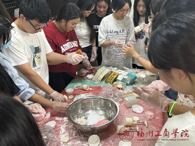 活动现场热闹非凡,吸引了众多师生的热情参与。活动分为两大精彩板块:一是月饼制作环节,同学们先学习冰皮月饼的制作过程,从如何揉馅、包馅,到选择合适的模具进行压花,每一个制作环节细致入微。在拿到原料后,大家跃跃欲试,纷纷按照流程,滚圆、压模、脱模,忙得不亦乐乎。经过一个多小时的努力,一个个色彩斑斓、口味各异的月饼制作完成;二是博饼游戏,六骰齐掷,决出状元、榜眼、探花等六个等级,伴随着欢声笑语,同学们根据掷骰结果领取了洗衣液、纸巾等丰富奖品,共同传递着节日的喜悦与祝福。