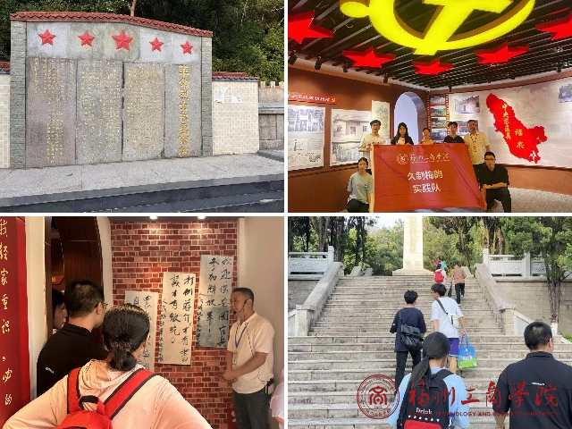 午后,实践队走进诏安县革命历史纪念馆。泛黄的老照片、带锈的步枪、烈士家书。在讲解员低沉的叙述中,诏安“红旗不倒”的革命史诗徐徐展开。队员们肃立于革命烈士纪念碑前,以默哀与合影定格此刻:“梅骨铮铮,亦如这片土地上的不屈灵魂。”