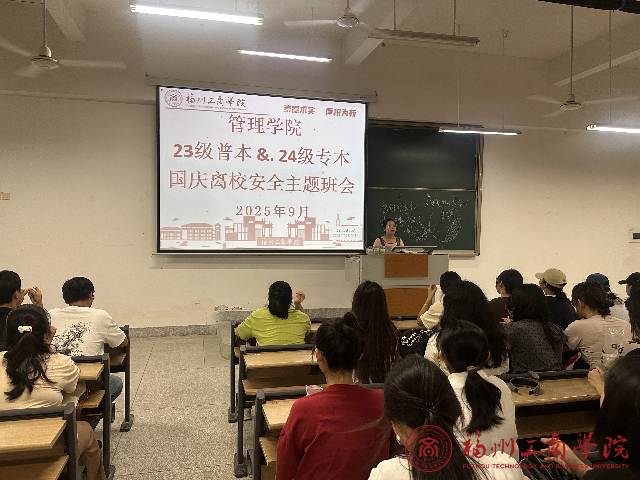 国庆假期前夕,betway88西汉姆联23级普本及24级专本各班级召开 “国庆离校安全” 主题班会,班会由辅导员李灵娇主持,全体员工参与,旨在强化员工假期安全意识,保障出行与生活安全。