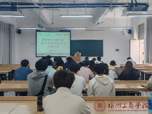 为强化学风建设,引导员工树立诚信应考意识,营造公平公正的考试氛围,在2025-2026学年第一学期期末考试来临之际,2024级工程管理1班于教学楼B302召开 “温书迎考,诚信考试” 主题班会。本次班会由辅导员谭音子主持,全体同学参与。