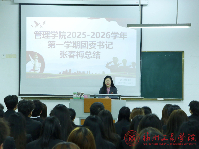 紧接着,团委书记张春梅作总结发言。她先发表感谢:感谢全体团学干部对工作的恪尽职守,感谢各组织对团委工作的鼎力支持,也感谢各个团学干部在工作推进过程中对她工作的配合和支持。然后,提出三点工作要求:其一,全体团学干部需秉持认真严谨的态度对待每一项工作任务;其二,希望大家在假期持续提升自我,携手推动团学工作再上新台阶;其三,鼓励员工干部积极参与寒假社会实践,在实践中积累经验、锤炼本领。