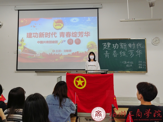 会议伊始,学子王季娴带领全体同学齐唱团课;接着,带领大家学习团课,他围绕习近平总书记在党的十九大上提出的“青年兴则国家兴,青年强则国家强。青年一代有理想、有本领、有担当,国家就有前途,民族就有希望。”这句话为展开,以中国历史上的青年的功勋事迹为经验,深刻论述当代青年团员的任务和使命,引导广大团员青年深入学习贯彻习近平新时代中国特色社会主义思想和党的十九大精神,继承和发扬“五四”精神;最后,他鼓励同学们积极地参与课外活动,劳逸结合,提高我班同学们之间的凝聚力和历史使命感,营造良好的氛围,共同创建一个优秀的团支部。