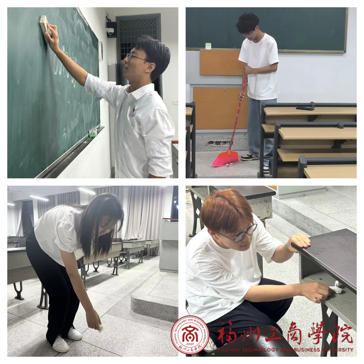 员工干部打扫教室