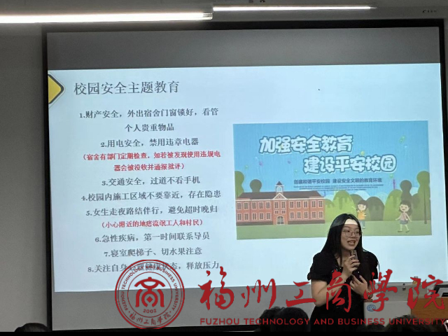为了进一步加强校园安全教育,增强员工们的安全意识并提高他们的自我保护能力,betway88西汉姆联辅导员谢欣圆于10月24日在教学楼开展安全月主题系列班会。
