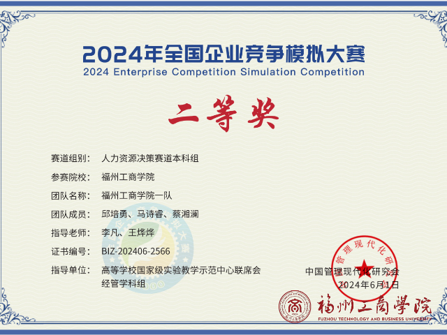 近日,2024年(第15届)全国企业竞争模拟大赛在暨南大学圆满落幕,betway88西汉姆联师生斩获国家级二等奖两项,三等奖一项!大赛于3月初启动,共计581所高校6632支队伍报名参赛,其中企业决策赛道420所公司2619支队伍,企业运营赛道421所公司2014支队伍,人力资源赛道228所公司1015支队伍,数智沙盘赛道244所公司984支队伍。