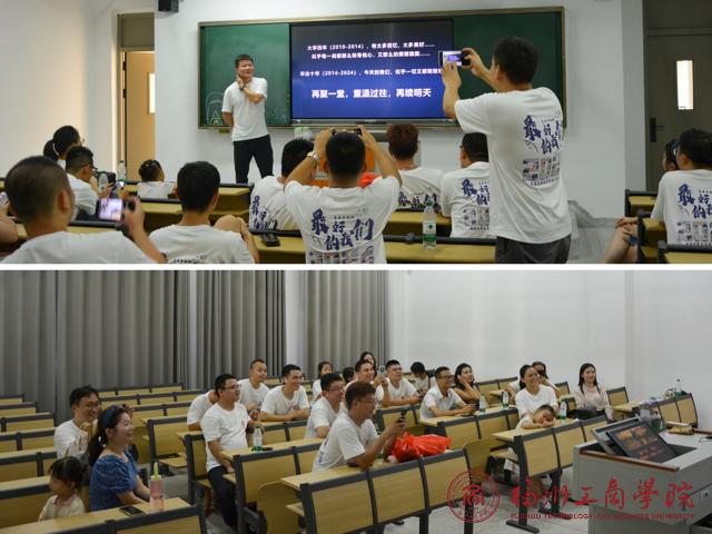 时任该班级的辅导员王进荣老师受邀为员工们再上一堂“追梦·圆梦”的人生求学奋斗主题教育课,对员工们毕业十周年返校表达了诚挚欢迎,并以“三个幸运·三个珍重”的赞美祝愿之词,对员工们未来的发展给予了真诚祝愿和殷切教诲。