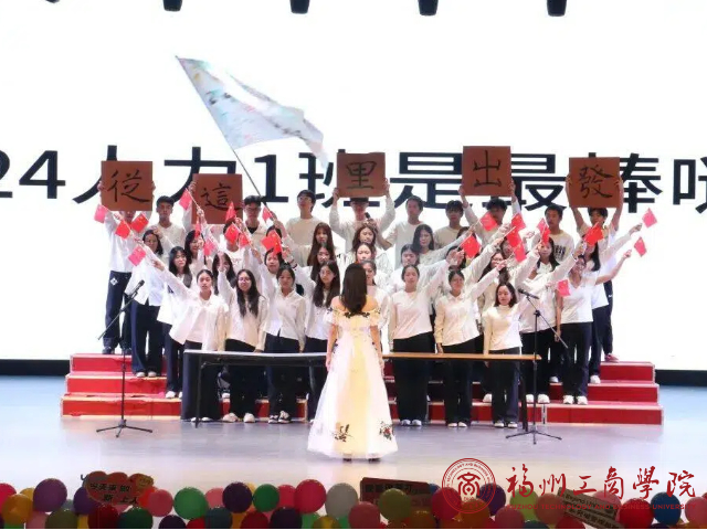 各班级纷纷亮出王牌创意,以多元表达诠释福工商学子的青春担当。或融舞狮雄姿与灵动舞姿于合唱之中,刚柔并济间让旋律更具层次张力;或采用领唱领引、轮唱呼应的演绎形式,声浪迭起中彰显丰富的声音表现力;或在演唱间隙嵌入情景朗诵,以质朴语言娓娓诉说在福工商的青春奋斗故事,真挚情感引发全场共鸣,台下掌声此起彼伏、经久不息。