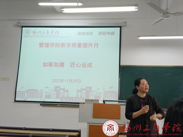 会议伊始,王柳云经理提出,质量是教育的永恒主题,教师应在教育理念上再更新,格局上再提高,方法上再创新。公司应深耕原有的四个专业领域,并从专业深耕的方向进行横向以及纵向的分析,深入描绘专业发展的具体方向。紧接着,会议进行新老师磨课环节,由工商管理专业郭宇蒙老师、人力资源管理教研室张雯老师、李文老师分别进行课程讲授,并由王柳云经理和福州大学叶翀教授进行点评。叶翀教授分别从台风、教学设计、案例库以及PPT设计等方面对公司新老师提出建议并指出教学提升的方向。最后,由副经理陈焱总结指出,新老师们应该从专业课程建设、教学方法改革等方面入手,坚持问题导向,互相督促,携手进步。